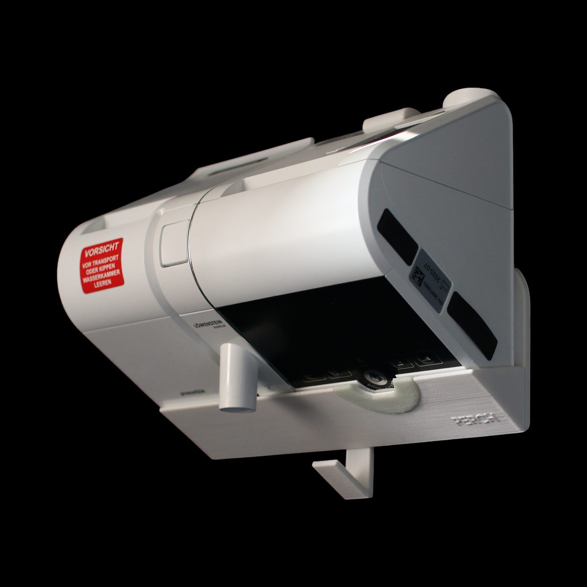 Wandhalterung Löwenstein CPAP (ohne Befeuchter). 90-Grad-Wandhalterung mit geschütztem Klemmsystem.